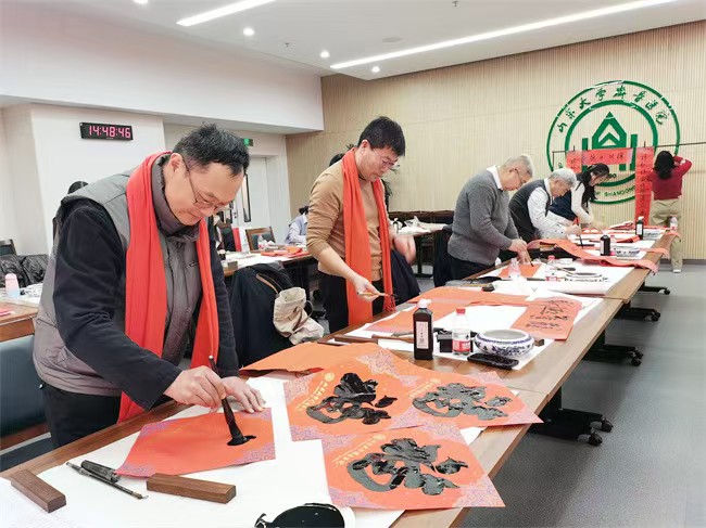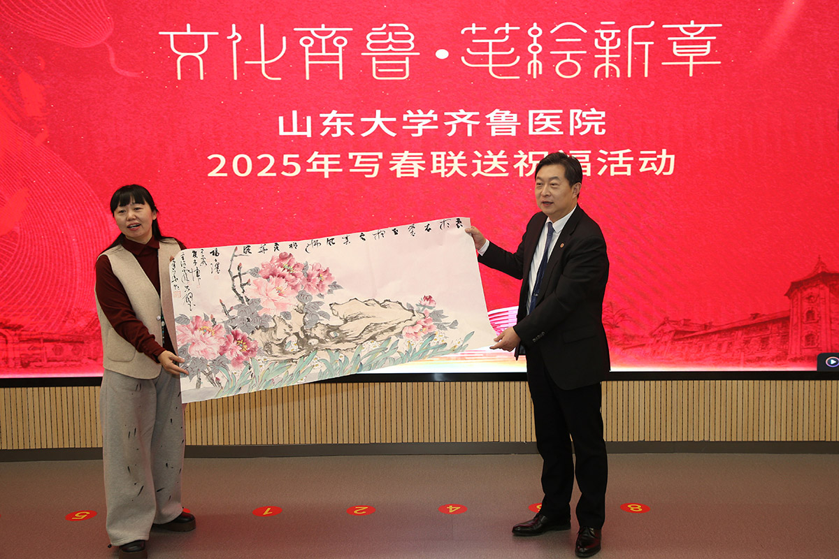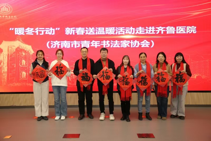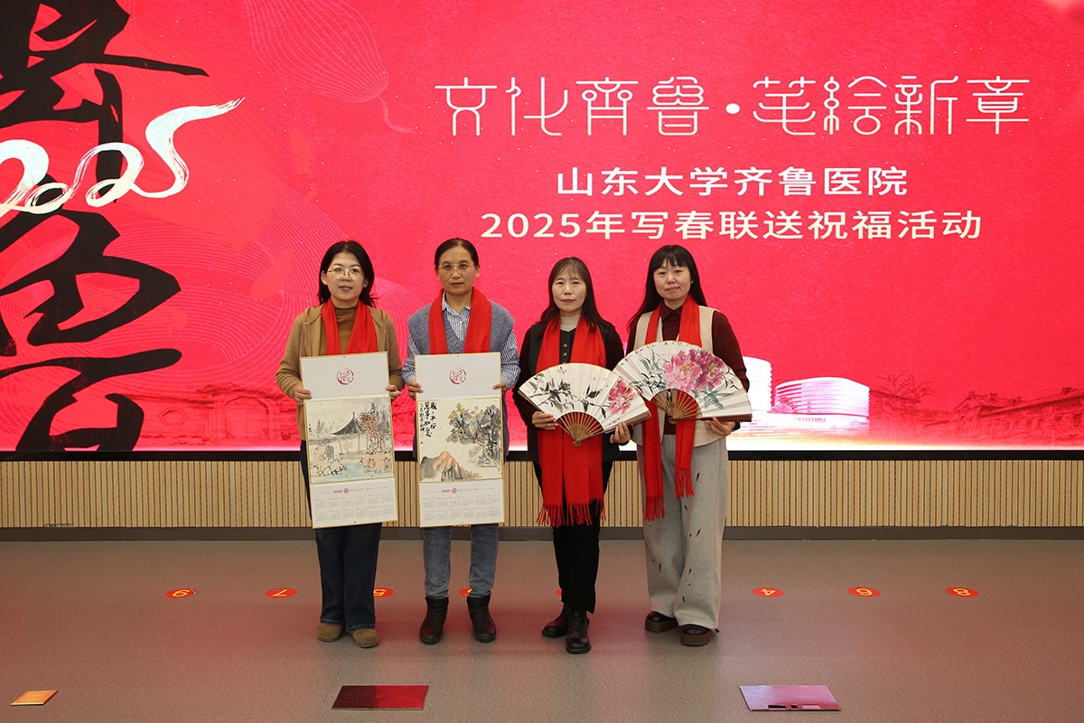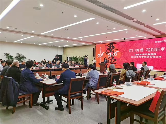 2025年1月17日,山东省女书画家协会,应邀参加了山东大学齐鲁医院党委宣传统战部、离退休职工服务中心联合举办“文化齐鲁·笔绘新章”2025年写春联送祝福活动。此次活动,女画家们以笔墨传情,为活跃在齐鲁医院第一线的医护工作者们赠送书画作品,每幅作品都凝聚着对美好的期盼与新春的祝福!